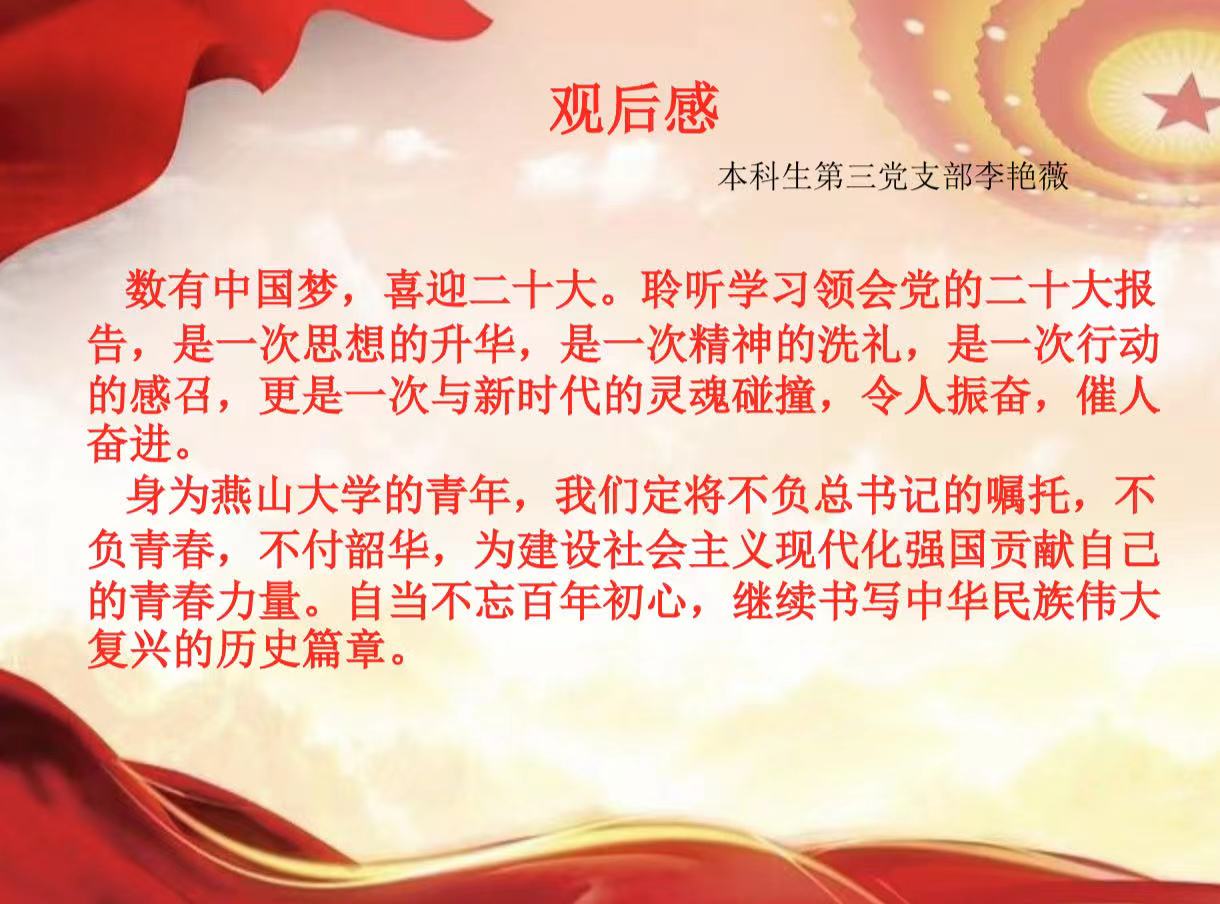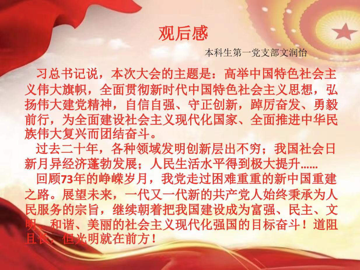 收看过程中,所有师生党员聚精会神、边听边记。聆听了习近平总书记的工作报告后,大家心潮澎湃,备受鼓舞,感受党和国家事业取得的历史性成就,汲取奋进新征程的强大力量。