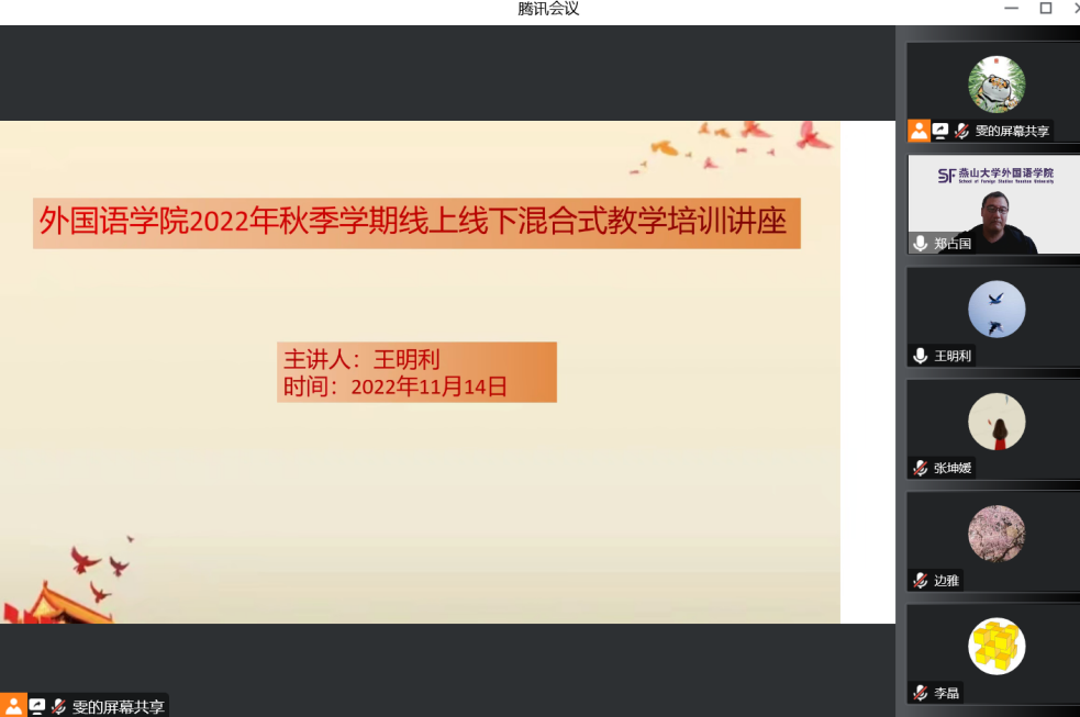 为提升教师线上线下混合式课程教学能力,引导、激励教师申请教改项目、采用多元化教学模式开展教学,根据学校统一安排,我院于11月14日下午3:00举办了“线上线下混合式教学”专题培训会。会议邀请了理学院副院长王明利教授作为主讲人,以腾讯会议的线上形式开展,全体教师参加,副院长郑占国主持。