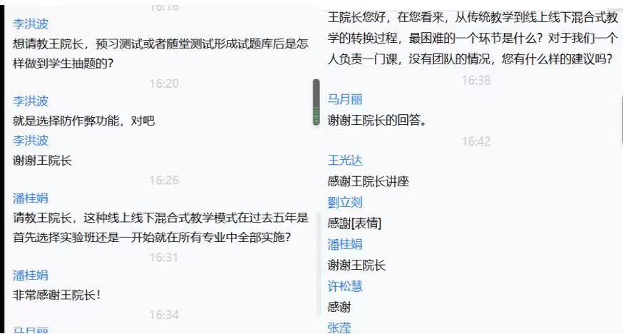 随后,我院多位老师针对自身在开展线上线下教学改革和教学过程中出现的问题,和王明利教授进行了探讨,王明利教授皆给予了细致认真的解答,为老师们解开了困扰许久的教学难题。