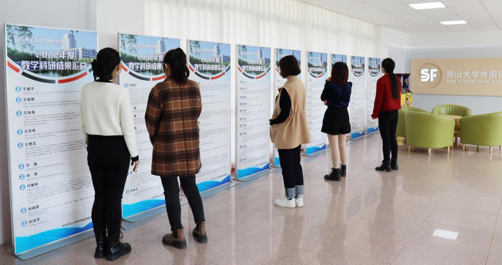 本次科研成果展示共展出97名教师科研成果共计160余项,比2021年增长33人。展出成果涵盖国家社科基金项目、教育部产学合作协同育人项目、河北省社科基金项目、河北省教育厅项目河北省社科联项目、河北省普通本科院校英语教学改革研究与实践项目、"习近平治国理政进课堂”指令性项目、研究生教改项目、、秦皇岛市社科联项目、校级科研项目、创新创业项目、院本科教学团队培育项目、核心期刊论文、专著、译著等。