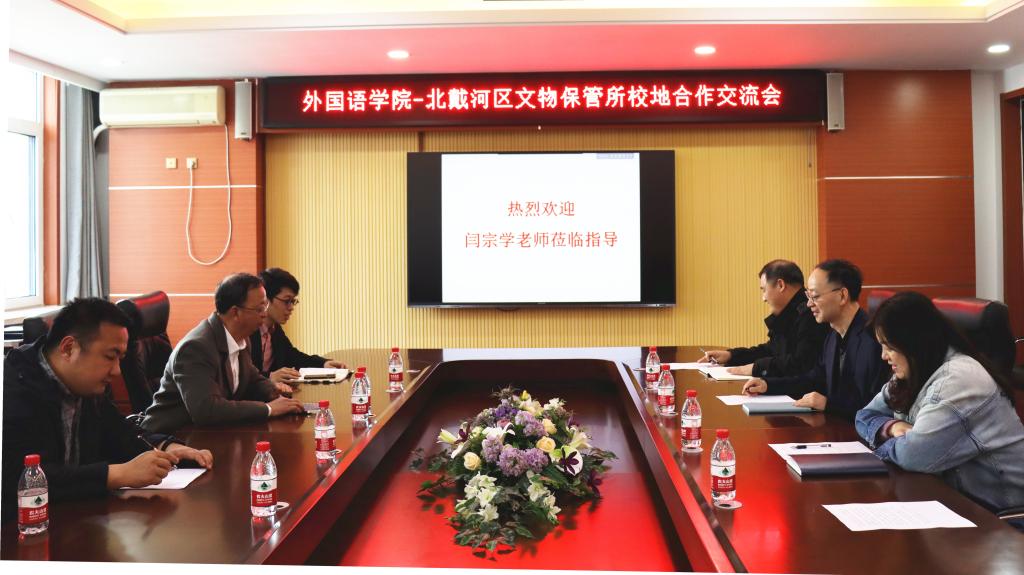 3月30日下午,北戴河区文保所长闫宗学到星空(中国)就校地合作事宜进行交流,王林海院长等部分学院领导参加,日语系主持了交流会。