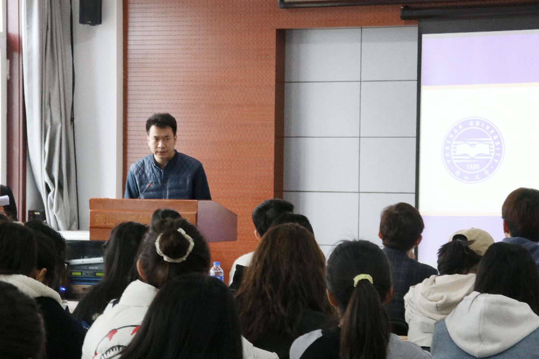 夏亮亮在致辞中对校友企业一行表示感谢,并指出学院的发展离不开各界校友的大力支持、校友企业的热心帮助。以此次图书捐赠活动为开端,希望能进一步加深与校友企业的交流沟通,持续发展深入合作,多联系、多走动,在共谋发展的道路上守望相助、携手前行。