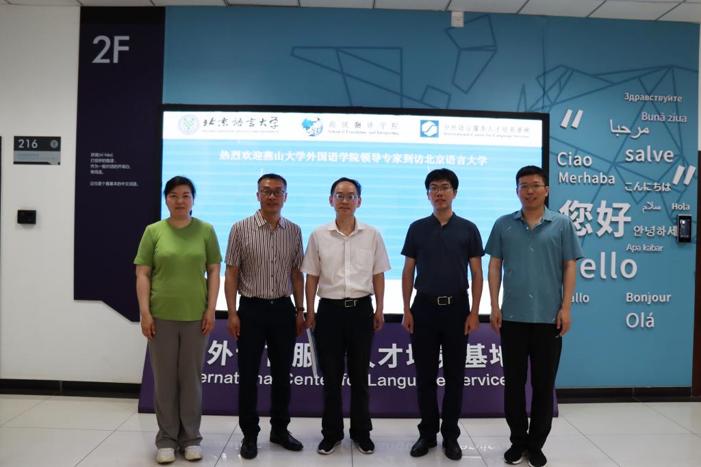 5月15日上午,到北京语言大学外国语学部翻译与国际传播研究院调研。北京语言大学外国语学部主任高明乐、研究院许明老师对燕山大学到访表示诚挚欢迎,并就科学研究、科研项目培育、人才培养、研究基地管理、干部管理和聘任等方面介绍了经验和做法,随后带领调研团队参观了北京语言大学语言文化翻译与国际传播研究基地。院长王林海希望以此次座谈会为契机,搭建沟通互动平台,借助和发挥北语资源优势,通过学习、借鉴,推动星空(中国)教学科研工作打开新局面。