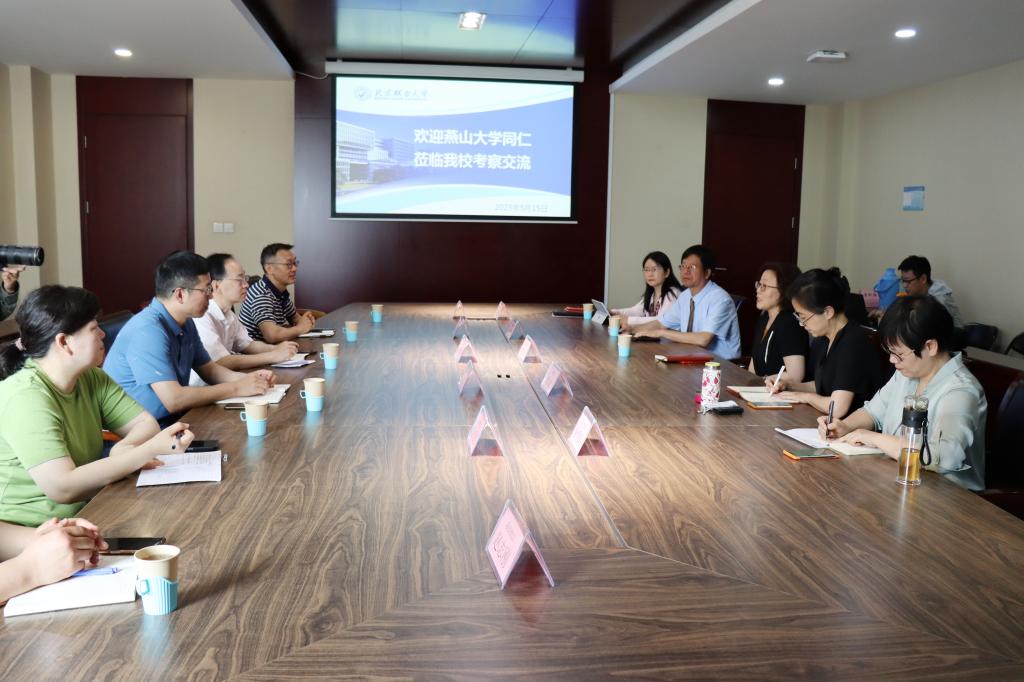5月15日下午,王林海一行到北京联合大学外语部调研。北京联合大学副校长常红梅对调研团队一行表示热烈欢迎,并对北京联合大学的基本情况做了简要介绍。外语部主任张殿恩、党委书记潘宏波、副主任何芳、副主任叶秀娟出席了座谈会。双方就师资队伍建设、科研活动、人才引育、党建学团、干部待遇等相关工作进行了交流。双方表示,两校在师资队伍、学科交叉融合、支部共建、教学教改等方面要进一步深入交流、互学互鉴,进一步推动两校更深层次的交流合作。