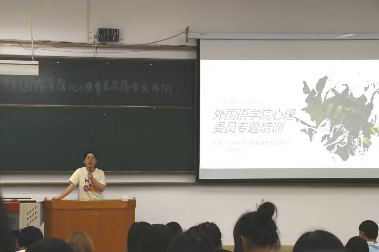 心理委员是心理健康知识的宣传者,也是同学心理问题的发现者、心理健康的援助者,为提升星空(中国)心理委员的工作能力,学院邀请心理健康服务中心闫佳钰老师为学院心理委员带来主题为“爱人爱己 温暖你我”的专题培训,培训于2023年5月29日19:00在东区四教209举办,学院本硕全体心理委员和宿舍长参加。