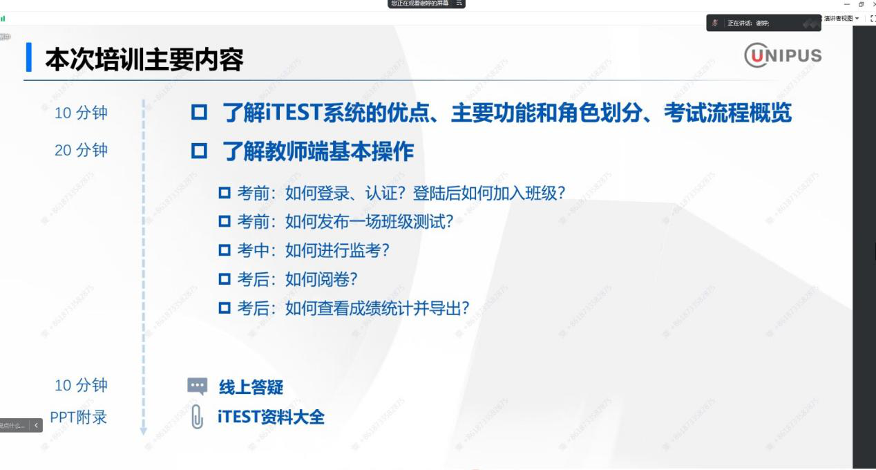 本次培训是我院为教师提供教学法、课程思政、信息技术等方面的系列培训之一。iTEST智能测评云平台的应用,可以为高校创新教学模式、开展课题研究、建设线上线下混合式教学模式、增进合作交流提供强有力的支持与保障。