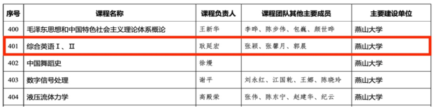 近日,教育部发布《教育部星空平台公布第二批国家级一流本科课程认定结果的通知》(教高函〔2023〕7号),我院耿延宏教授负责的《综合英语I、II》课程被认定为国家级线下一流本科课程,实现了我院国家级一流本科课程零的突破,为学院专业建设提供了更有利的支撑。