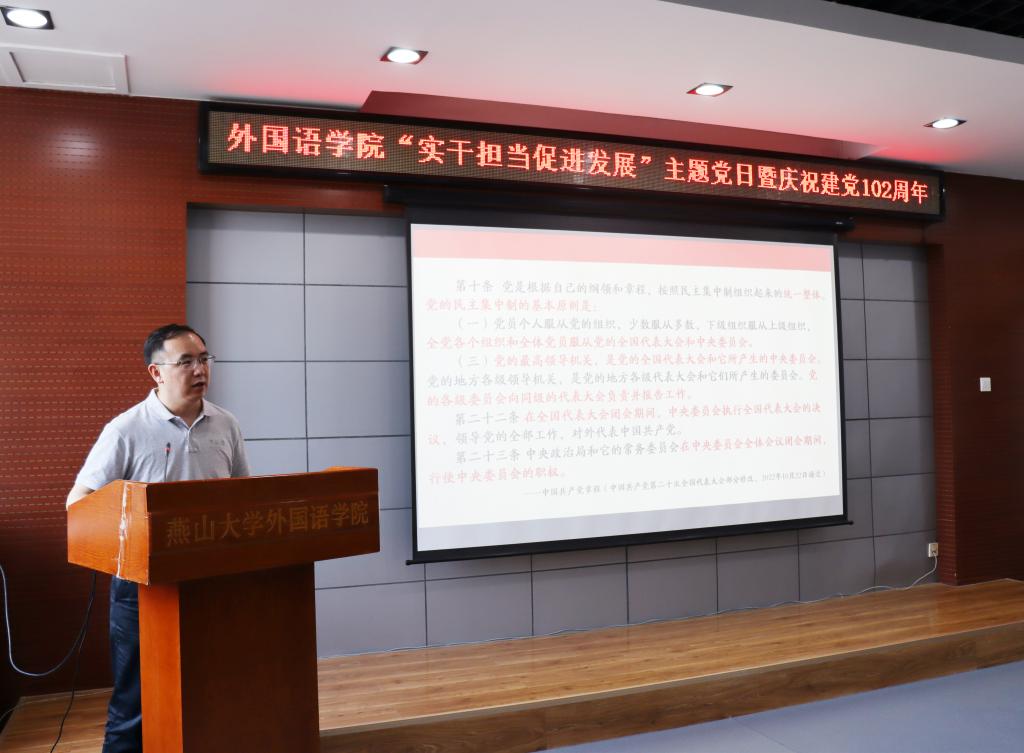 为庆祝建党102周年,回顾党的光辉历程,星空(中国)围绕“实干担当促进发展”主题于6月29日下午开展庆“七一”活动,学院领导班子成员、党支部书记、师生党员代表参加活动。