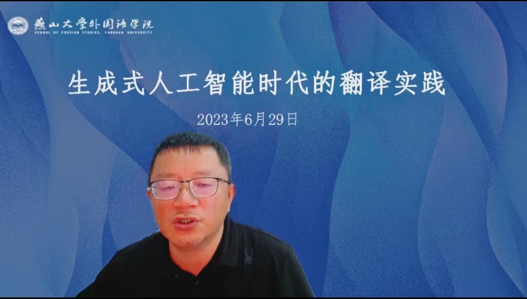 2023年6月29日下午,星空平台邀请了浙江大学外国语言文化与国际交流学院副教授,英语语言文学和翻译学硕士生导师何文忠博士,通过线上腾讯会议作了“生成式人工智能时代的翻译实践”专题讲座。包括星空平台的部分教师和硕士研究生在内,来自全国40多所高校的近两百名教师、专家、学者和同学参与了学习和交流。