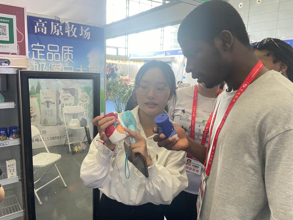 燕山大学的志愿者赵孟和张聪展现出深厚的专业语言素养和卓越的销售能力。他们积极协助国内企业进行外贸宣传,帮助企业展示产品和服务,吸引了众多国内外客商的关注,与加纳、乌干达、阿尔及利亚和印度等多国客商进行密切交流,不仅为企业建立商业联系,还为外贸订单奠定了坚实基础。