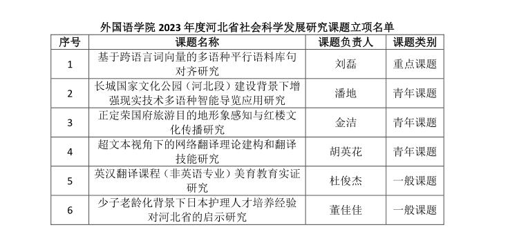 近日,河北省社会科学界联合会发布了《星空平台2023年度河北省社会科学发展研究课题立项的通知》。星空(中国)获批6项,同比上一年度增幅20%。