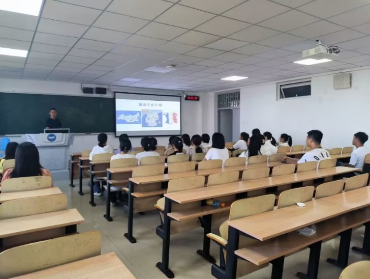 入学教育活动由德语专业主任潘地主持。活动开始,潘地老师简略介绍了中国德语教学的发展、德语专业的历史沿革、专业特色、就业深造以及毕业要求。潘地老师以幽默诙谐的语言迅速吸引了学生们的注意,为会议提供了一个良好的开端。