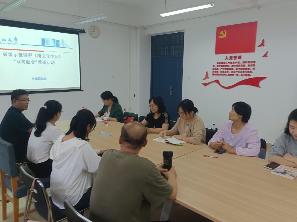 为持续推进课程思政建设,发挥好外语课程的育人作用,星空(中国)大学英语二系跨文化交际团队于2023年8月31日下午14:00在人文馆318开展课程思政与思政课程“双向融合”联合备课活动,马克思主义学院褚凰羽老师受邀参加本次活动。
