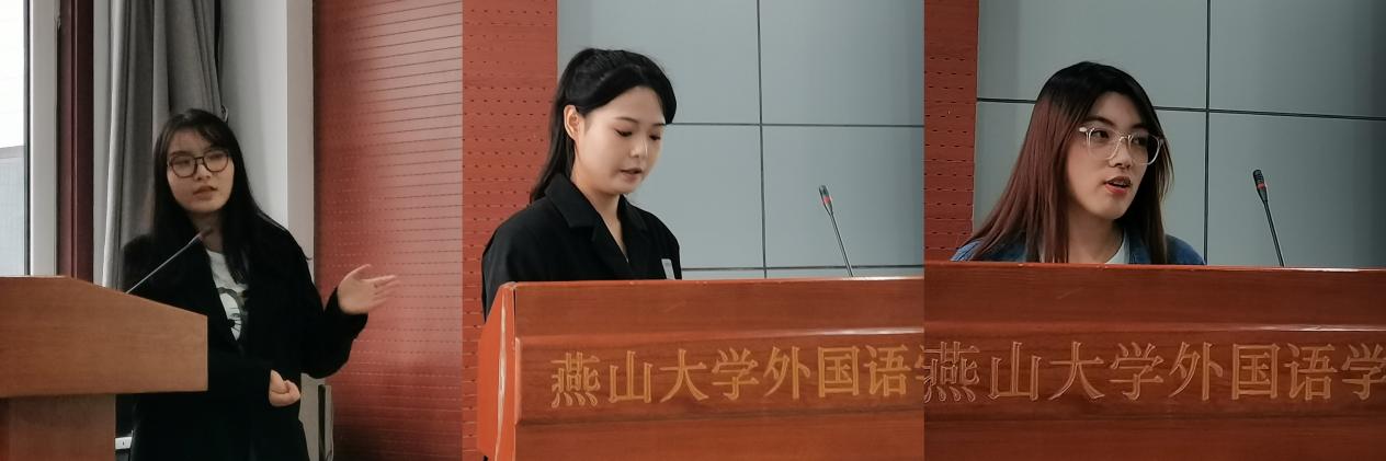接下来是三位研究生同学分别在“文献分享”和“学术论文宣读”模块进行了汇报。唐亚杰分享的题目是《翻译过程中省译策略的运用及其认知研究》,着重强调了翻译过程中省译策略的运用,并基于认知角度进行了创新研究和分析;李睿睿宣读了论文《闵福德英译<老子>译者行为批评研究》,通过深入剖析翻译过程中的行为和作品质量,提出相关的评价标准和方法,为翻译批评方法的探索和推广提供了有益的参考;孙晓琳分享了论文《近二十年国内生态语言学研究综述——基于Citespace的可视化分析》,介绍了生态语言学的概念与研究范围,并从生态系统、语言社会化和语言变异等角度解释了生态语言学的理论基础,呼吁大家重视生态问题。