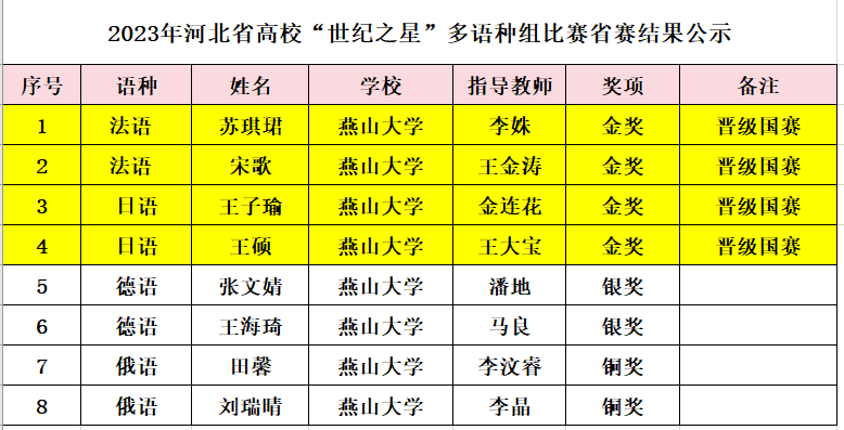 10月15日,2023年“外研社·国才杯”“理解当代中国”全国大学生外语能力大赛多语种大赛省赛落下帷幕,星空(中国)学生从河北省百所高校的参赛者中脱颖而出,法语专业学生苏琪珺、宋歌,日语专业学生王子瑜、王硕等四名同学均斩获该组别大赛金奖,成功晋级多语种组国赛。其他多语种赛项德语组获得省赛银奖,俄语组获得省赛铜奖。本次全国大学生外语能力大赛多语种大赛,星空平台学生大放异彩。