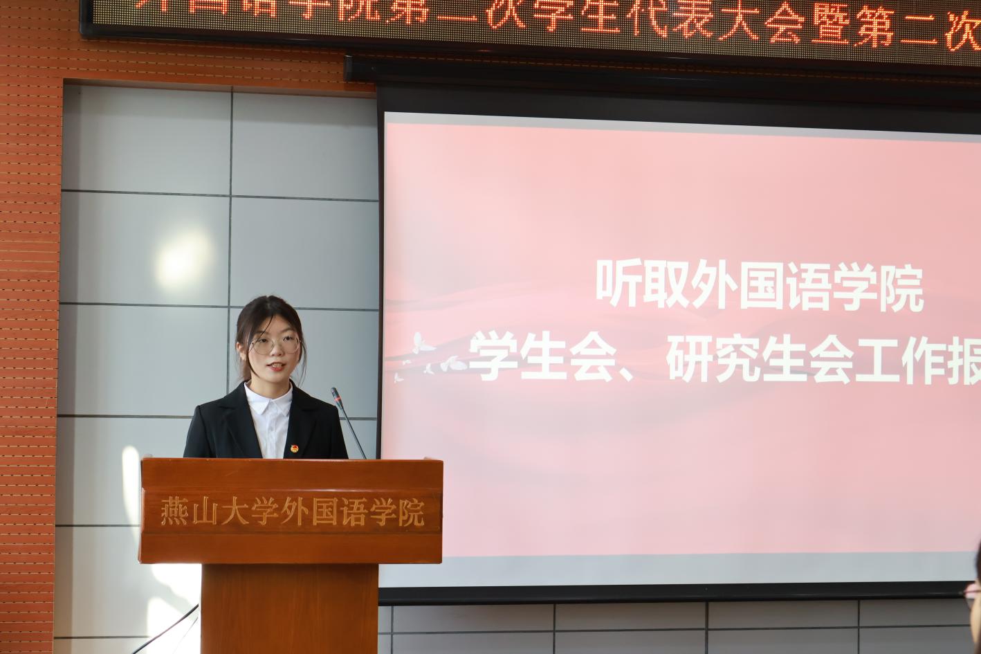 会上,谢悦和李可实分别代表院学生会和研究生会以《凝聚青春新力量,砥砺奋进新征程》和《吾辈青年当立志,风华正茂述青春》为题向大会作工作报告。