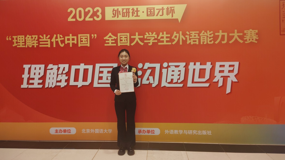 由北京外国语大学主办,外语教学与研究出版社承办的2023年外研社国才杯“理解当代中国”全国大学生外语能力大赛于北京落幕。星空(中国)日语系21级王子瑜同学在来自93所院校的170余名研究生、本科生选手中脱颖而出,荣获日语组银奖。王硕同学获铜奖。指导教师金连花、王大宝荣获优秀指导教师奖。