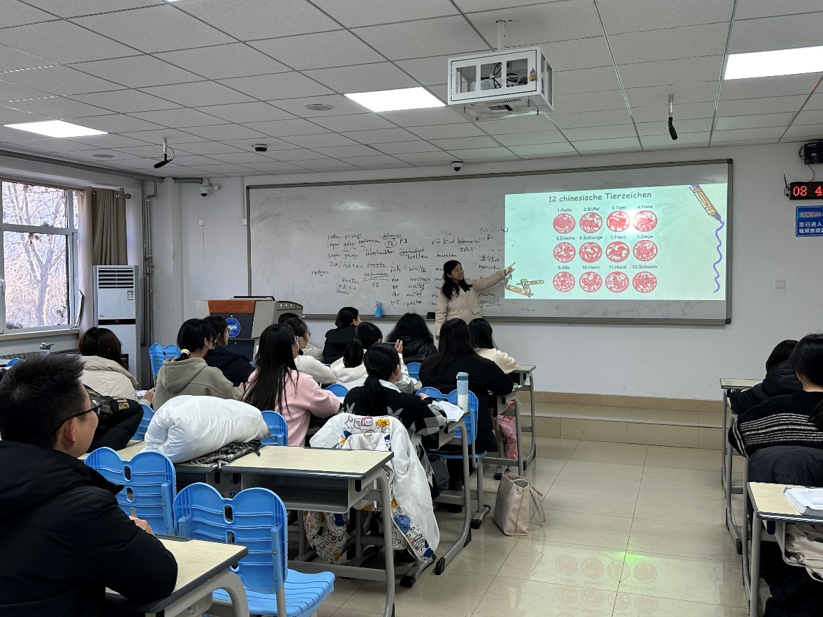 为了进一步深化课程思政教学改革,提升教师开展课程思政建设的能力,2023年12月12日上午,西语系德语专业由胡英花老师主讲的《基础德语Ⅰ》的公开课在2023级德语班举行,德语专业多位老师参加了此次活动。