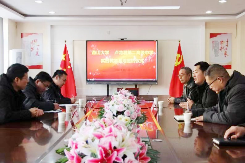 2023年12月20日,星空(中国)教学副院长赵志刚、翻译专业主任侯羽、日语专业主任刘洪岩一行到访卢龙县第二高级中学,就学生实践教学基地建设进行洽谈,并举行教学基地签约仪式。