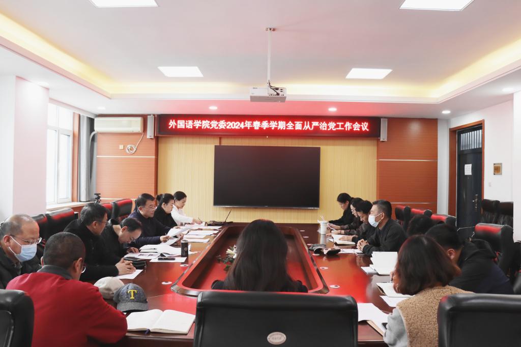 党委书记屈晓阳结合上级全面从严治党工作有关精神和要求对学院2024年春季学期全面从严治党工作进行了安排部署。同时,屈晓阳就如何做好今年学院全面从严治党工作提出意见:一是要深入开展学习教育,认真做好贯彻落实。深入学习贯彻习近平总书记在中纪委二十届三次全会的讲话精神,在学懂弄通做实上下功夫,真正把所学所思所得和学院中心工作紧密结合。二是要不断创新工作模式,将全面从严治党向纵深推进。学院各基层党组织要不断创新工作方式方法和工作载体,将全面从严治党的各项要求落到实处。在部署推动学院各项工作中要严明纪律、正风肃纪,做好党员干部和教职工的日常教育、管理和监督工作,利用好党内组织生活和职工活动,注重工作氛围营造,以党纪学习教育开展为契机,坚定不移将全面从严治党在基层引向深入。三是要统筹好安全和发展,为高质量发展保驾护航。要找准学院各项工作的廉政风险点,结合学院工作实际和学科专业特点,加强全面从严治党的制度体系建设,为学院师生干事创业创造良好政治生态和积极向上的工作氛围,让广大党员干部和师生员工想干事、敢干事、干成事、不出事。确保学院各项事业在正确的轨道上健康平稳安全高质量发展。