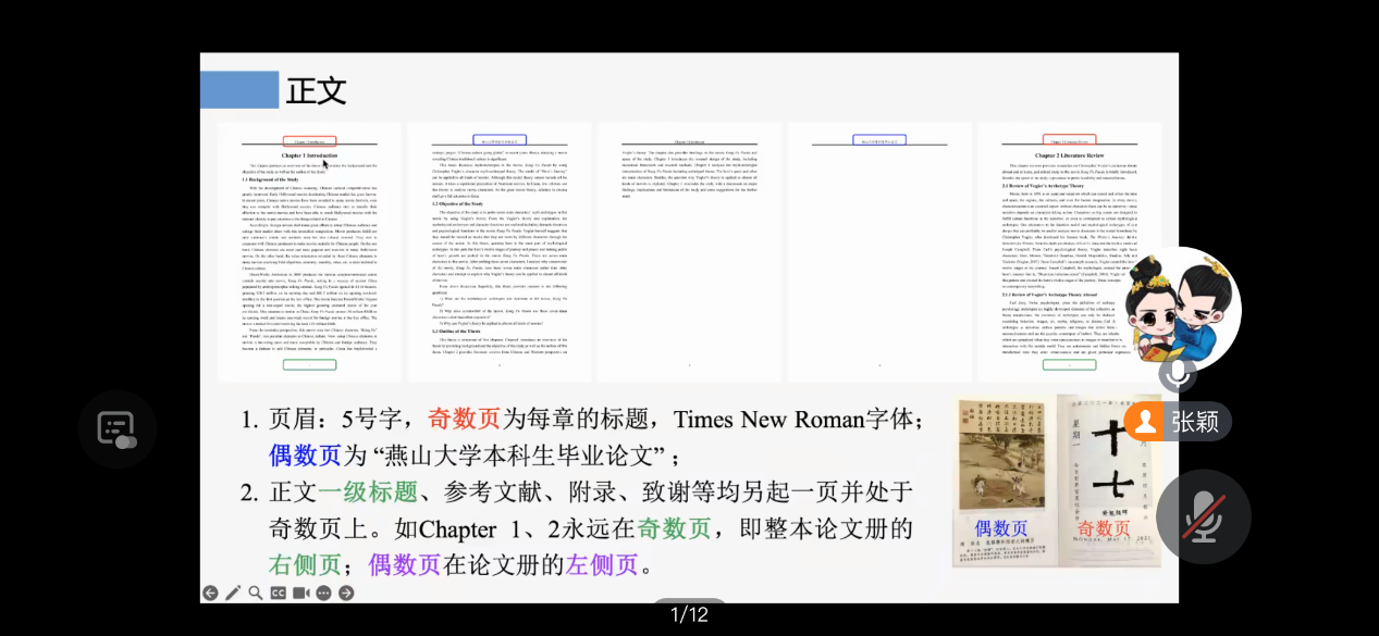 最后,张颖主任对论文格式规范进行了详细说明,包括论文装订顺序、封面、扉页、原创性声明、授权书、摘要与目录、图表、正文等方面,帮助同学们准确规范地完成论文写作。