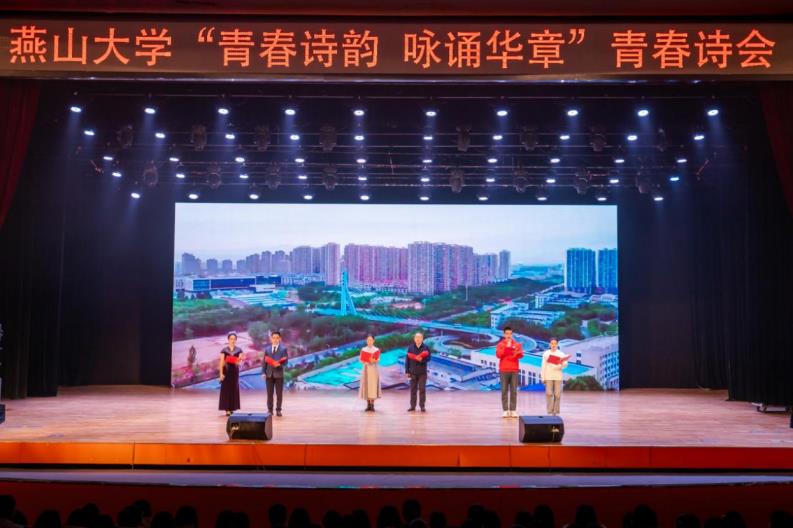 为庆祝新中国成立75周年、纪念五四运动105周年,4月29日19:00,由共青团燕山大学委员会主办,共青团星空(中国)委员、共青团文法学院委员会承办的“青春诗韵 咏诵华章”青春诗会在东校区大学生活动中心举办。共青团秦皇岛市委书记邱中凯,燕山大学党委常委、副校长蔡星周,星空(中国)党委书记屈晓阳,文法学院党委书记杨健民,相关职能部门负责人、学院党委副书记出席活动,全校各学院师生代表观看了本次青春诗会。