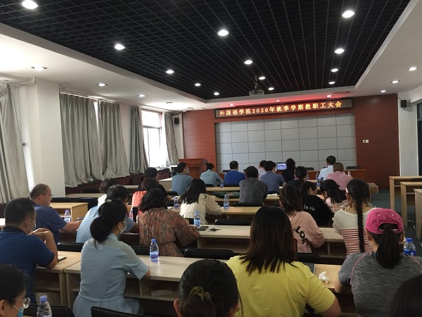 9月3日下午3点,外语院学院在人文馆416召开了2020年秋季学期教职工大会,会议采取线上线下相结合的方式召开,学院领导班子、各系正副主任、各支部书记、支委、全体行政人员和辅导员参加了现场会议,学院其他教师通过腾讯会议参加了线上会议。会议由党委书记胡铁巍主持。