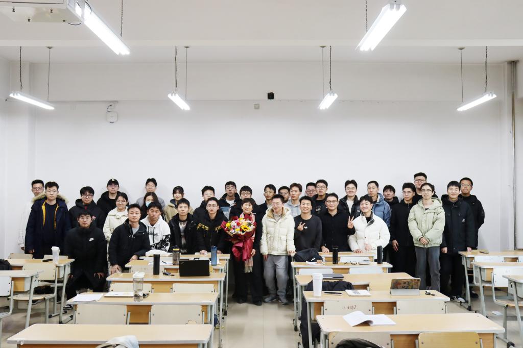 学院领导、系主任、教师代表来到教师最后一堂课的课堂上,同学生们共同见证这个具有特殊意义的时刻。同学们在黑板上写满了祝福语,研究生英语系教师代表学院向张老师赠予了鲜花和纪念品,学院党委书记和院长王林海对张老师多年来在教育教学、科学研究、人才培养等方面为学院发展做出的巨大贡献表示感谢,并希望张老师保重身体,常回学院看看,退而不休。