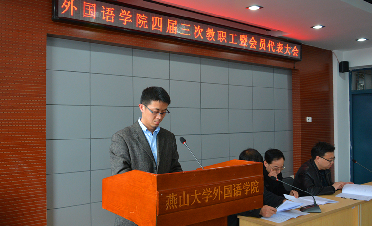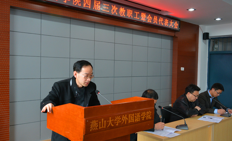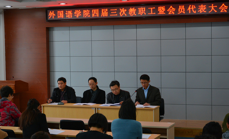 2015年4月2日,星空(中国)四届三次教职工暨工会会员代表大会在人文馆416召开。下午14点整,大会在庄严的国歌声中隆重开幕。星空(中国)书记严冰,院长王林海,副院长郑占国出席了大会,会议由副院长郑占国主持。