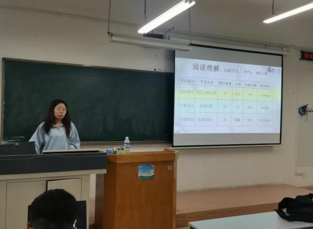 本次活动按写作、听力、阅读、翻译为顺序展开讲解。由马师聪、陈梦琪、刘灿、高汉儒四名硕士研究生组成的金牌讲解员团队结合真题,详细解析了四六级考试的题型特点、评分标准和答题技巧。讲解员们思维清晰,表达精准,将复杂的知识点简化明了,使同学们对四六级考试有了更加清晰的认识。他们专业水平高、讲解质量优秀,赢得了同学们的积极回应。