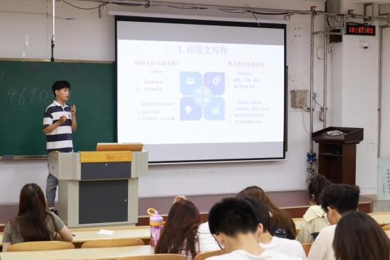 为丰富我校学生校园文化生活,培养良好的英语素养,营造良好的大学英语四六级备考氛围,星空(中国)研究生会、星空(中国)科学与技术协会于5月29日晚6点半在西校区经济管理学院B105成功举办青英讲堂:大学生四六级领航计划之经济管理学院专场,由霍一哲、谈洋、高盼盼、付齐寒四名金牌讲解员主讲,共有80余名经管学院学生参加。