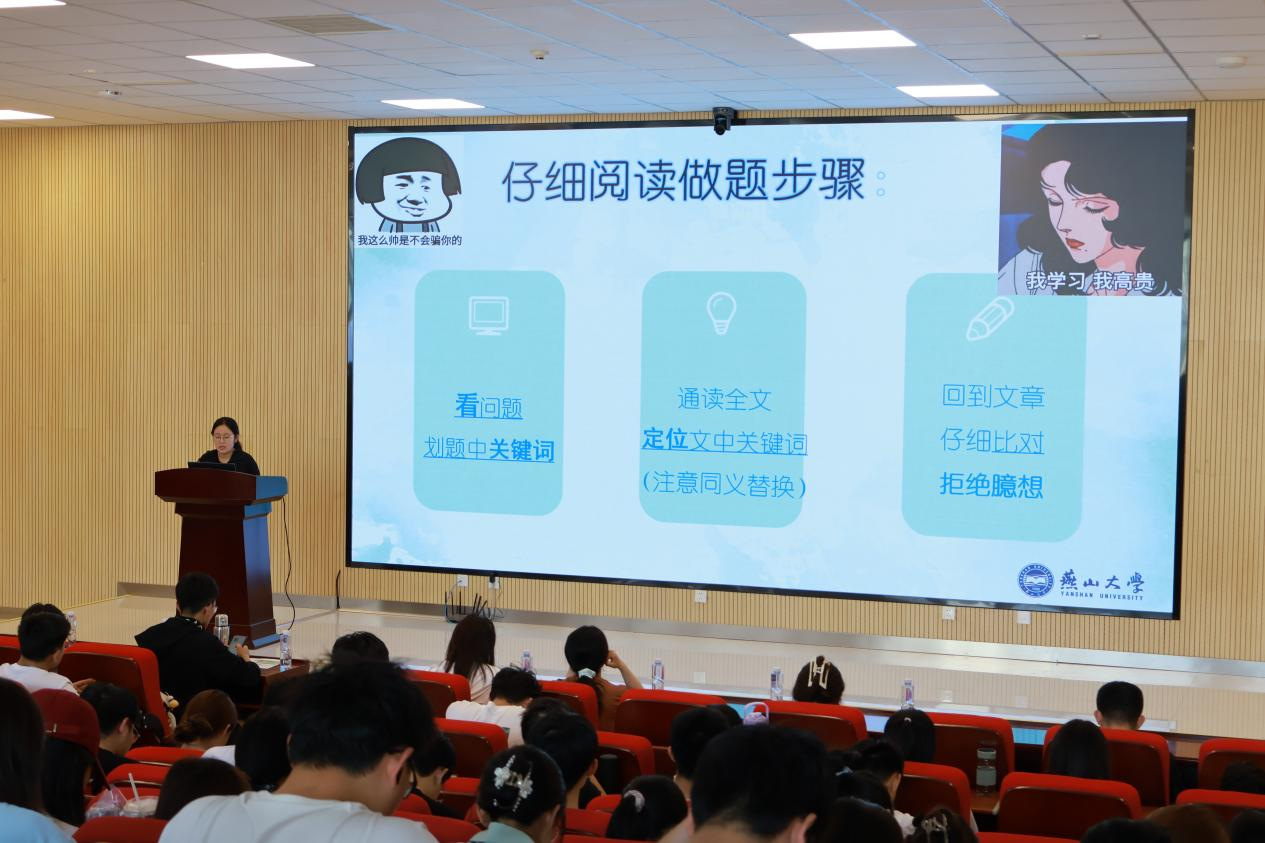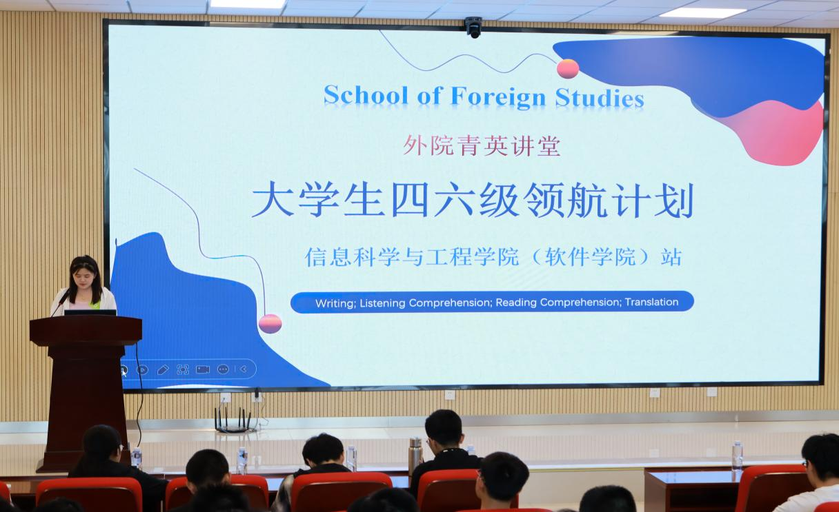 为切实满足同学们在英语学习过程中的需求,系统备考大学英语四六级考试,星空(中国)研究生会、星空(中国)科学与技术协会于6月1日下午3:00在西校区信息馆111行知报告厅成功举办青英讲堂:大学生四六级领航计划之信息科学与工程学院(软件学院)专场,由葛熙韵、马师聪、安伽柔、吴嘉玮四名金牌讲解员主讲,活动现场由星空(中国)研究生学生会成员王玉主持。