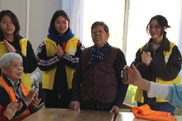志愿者与老人合照展示