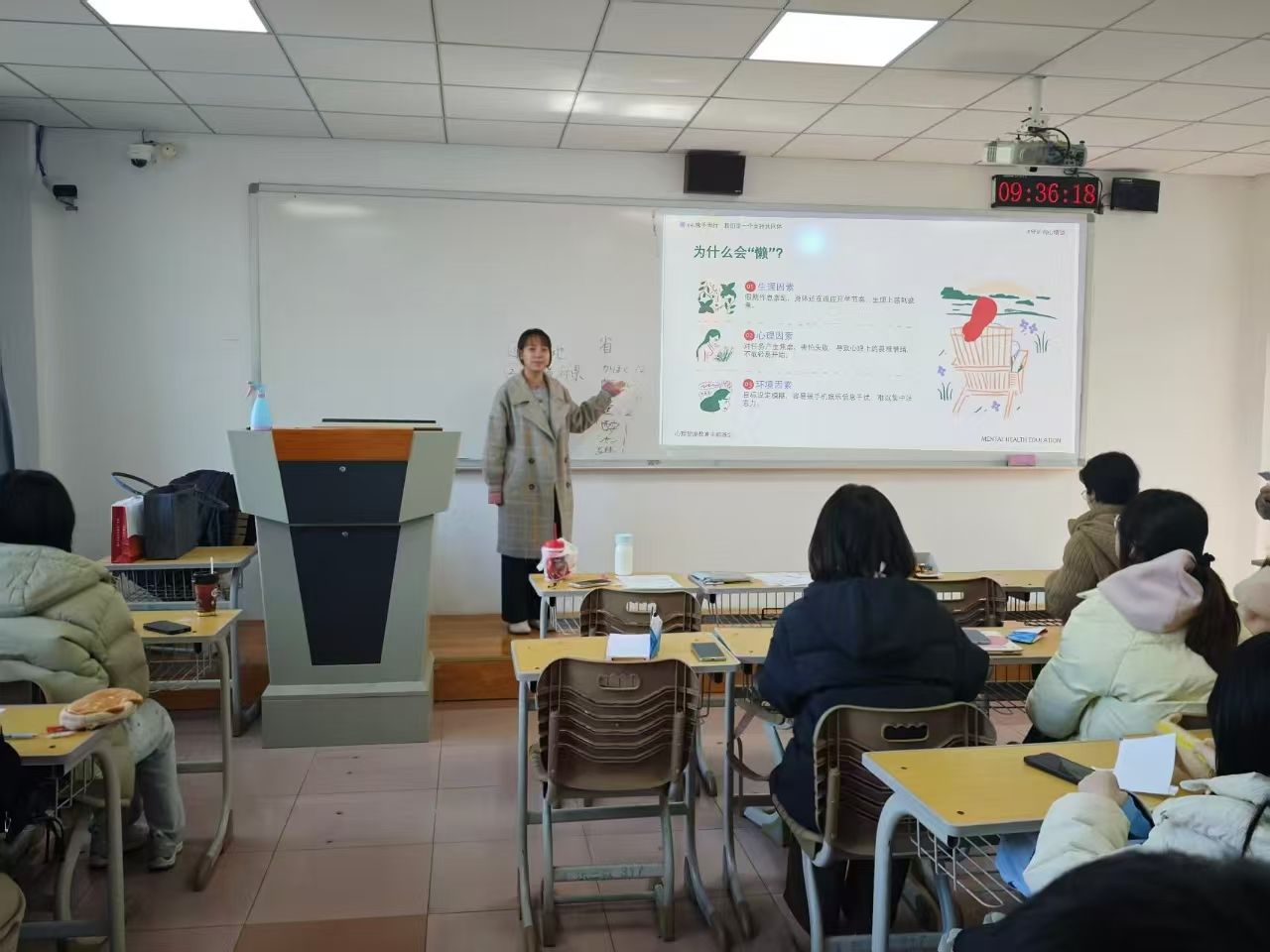 各班主讲人围绕“新学期的‘小惰性’”展开分享,通过列举赖床拖延、作业赶工、任务无限延期等日常场景,引导同学们正视自身存在的懒惰与拖延问题。随后,主讲人从生理因素、心理认知、环境影响等角度,深入剖析了“懒惰心理”的成因,让同学们清晰认识到假期作息紊乱、目标感缺失等是导致学习动力不足的关键原因。