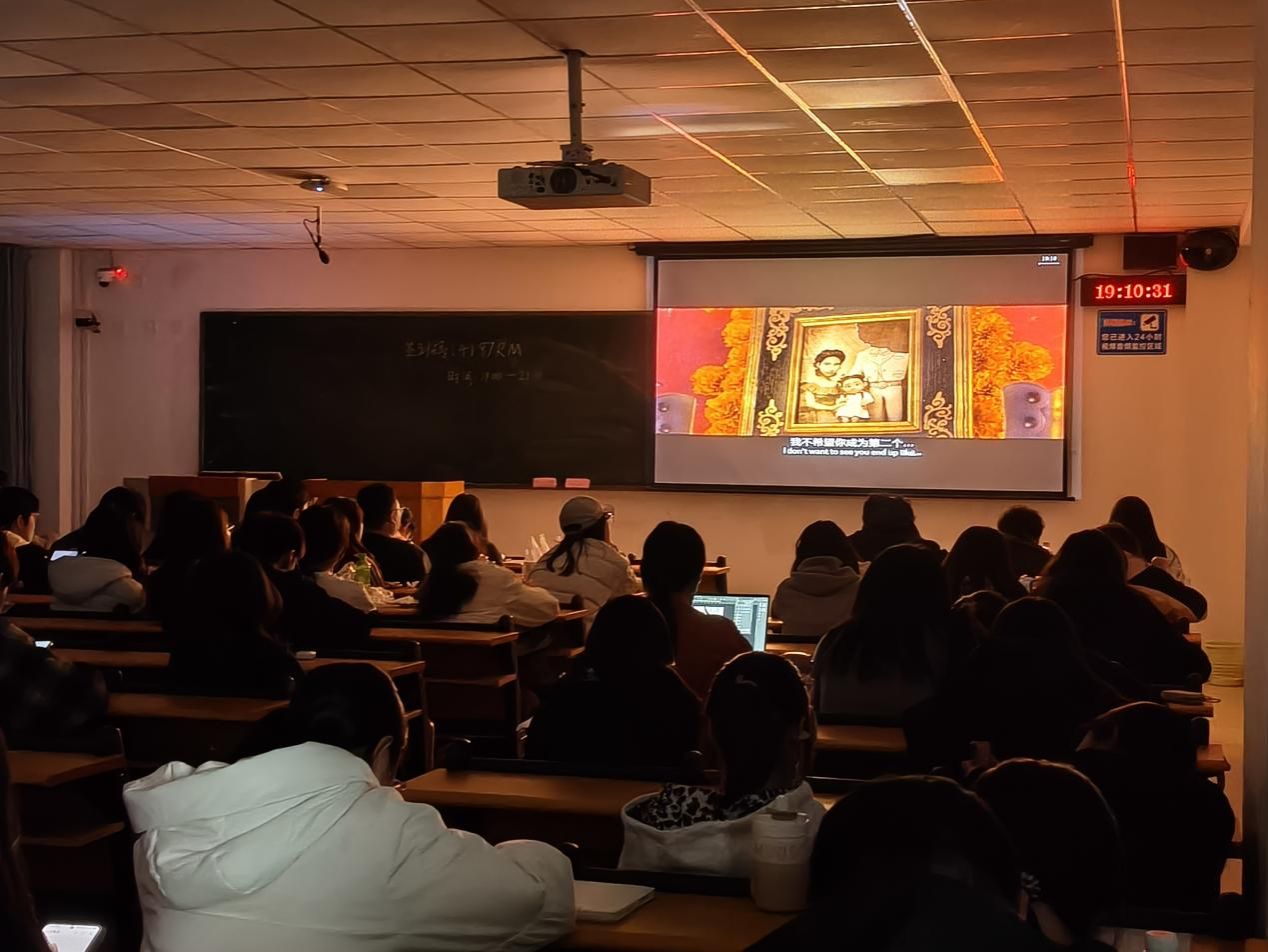 《寻梦环游记》用奇幻的画面、温暖的剧情,瞬间将现场学子带入充满墨西哥风情的奇妙世界。地道的英文原声搭配清晰字幕,让大家在跟随米格的寻梦之旅跌宕起伏的同时,潜移默化地积累实用英文表达、感受口语魅力。观影过程中,学子们不仅学习到角色对话中的发音细节、记录经典台词,也被剧情打动,眼中泛起温情的泪光。观影结束后,大家分享感悟,各抒己见,温馨的交流氛围中,每一份感悟都充满温度,充分展现了外院学子朝气蓬勃、乐于思考、善于表达的青春风采。