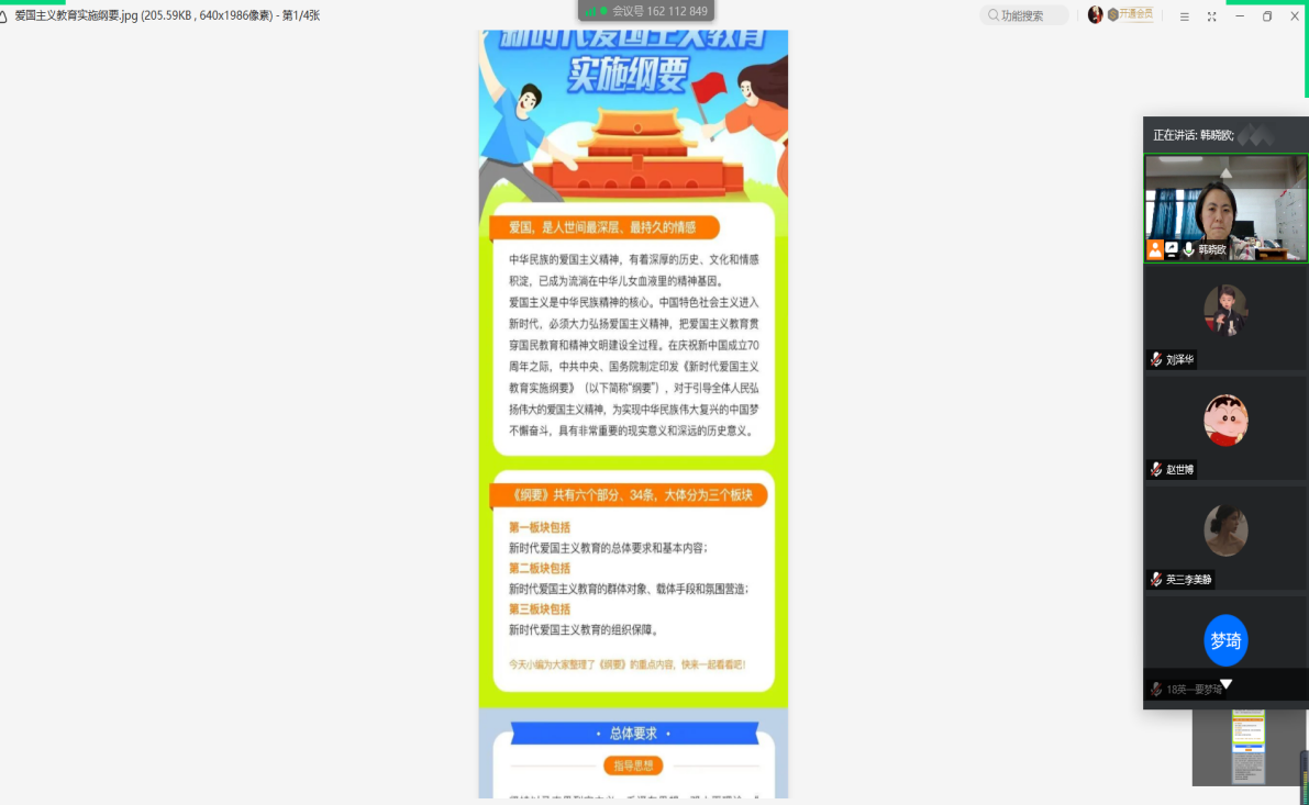 为进一步强化青年学生干部的使命感与责任感,学院团委书记韩晓欧老师围绕“加强新时代爱国主义教育 培养堪当复兴大任的时代新人”主题与学生干部在线进行了一次爱国主义教育,深度学习贯彻《新时代爱国主义教育实施纲要》,重点研读与理解纲要内涵,涵养积极进取、开放包容、理性平和的国民心态,引导做到自尊自信、理性平和,推动爱国之情转化为实际行动,将个人命运融入国家命运。通过深入学习纲要内容,学生们深深地感到爱国主义是中华民族的根和魂,一定要知国、爱国、为国,承担时代赋予青年的责任与使命。