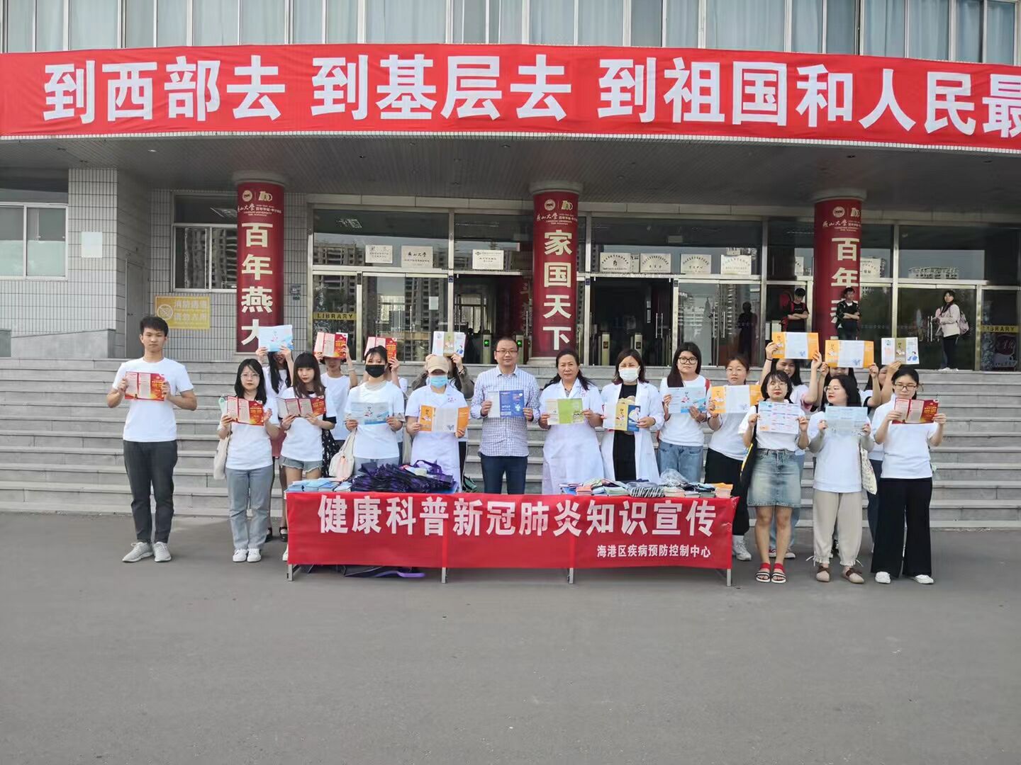 活动过程中,海港区疾病预防控制中心工作人员向过路学生发放新冠肺炎疫情防控知识宣传资料,并向学生耐心讲解新冠肺炎疫情防控、疫苗注射的相关知识及注意事项,为学生答疑解惑。
