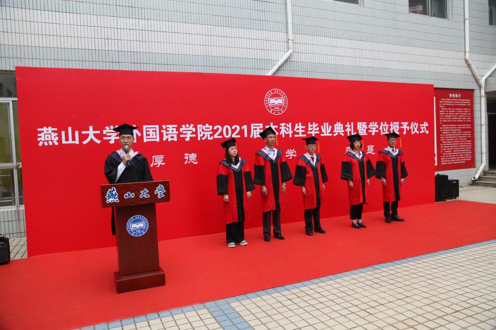 2021年6月9日,星空平台2021届本科生毕业典礼暨学位授予仪式在燕山大学东校区人文馆隆重举行。仪式由本科毕业生辅导员李鹏昊老师主持,学院党委书记胡铁巍、院长王林海、副院长付继林、党委副书记朱坤、副处级辅导员夏亮亮出席典礼,2021届全体本科毕业生和部分教师参加本次活动。