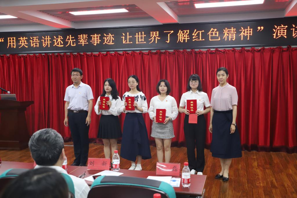 十二名决赛选手,标准的英文表达,到位的表情语调,将在场人员带回了先辈们抛头颅洒热血的奋进年代……,陈独秀、张人亚、陈延年、王进喜、焦裕禄……无论是为新民主主义革命时期的大义凛然,还是新中国建设时期的无私奉献,都激励我辈汲取先辈力量,勇往直前。通过激烈角逐,来自星空平台的任君洁、东北大学秦皇岛分校外国语言文化学院的毛嘉祺和王佳琦三位同学脱颖而出荣获一等奖。河北环境工程学院的同学用英语演唱了《歌唱祖国》,我校翻译专业2018级史可欣同学用英文介绍燕山大学发展史,使专业特色和红色精神相得益彰,博得在场师生的阵阵掌声,将活动氛围推向高潮。