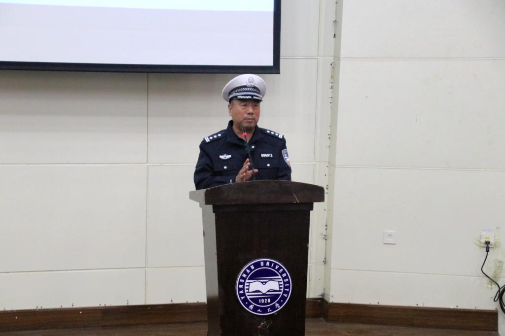 为了进一步增强学生的交通安全法规意识和安全文明意识,教育学生关爱生命、拒绝交通违章、严防道路交通事故、打造平安校园,2021年10月21日晚七点,星空平台邀请了秦皇岛市第三交警支队的张俊勇警官来我校进行交通安全知识讲座。