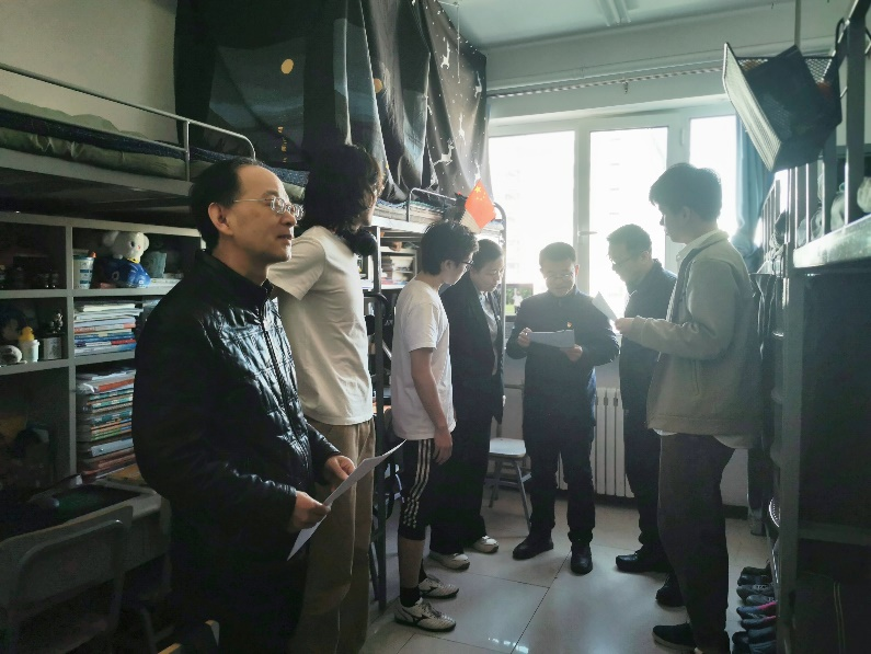 院长王林海在走访过程中向同学们致以亲切的慰问,并叮嘱同学们要高度重视消防安全,严格遵守相关规定,严禁在寝室内使用违规电器,保持宿舍整洁,共同守护宿舍安全,做到防患于未然。