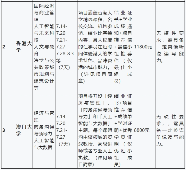 2、详细内容:以上项目详情请见项目简章,课程时间及项目收获等以简章为准。