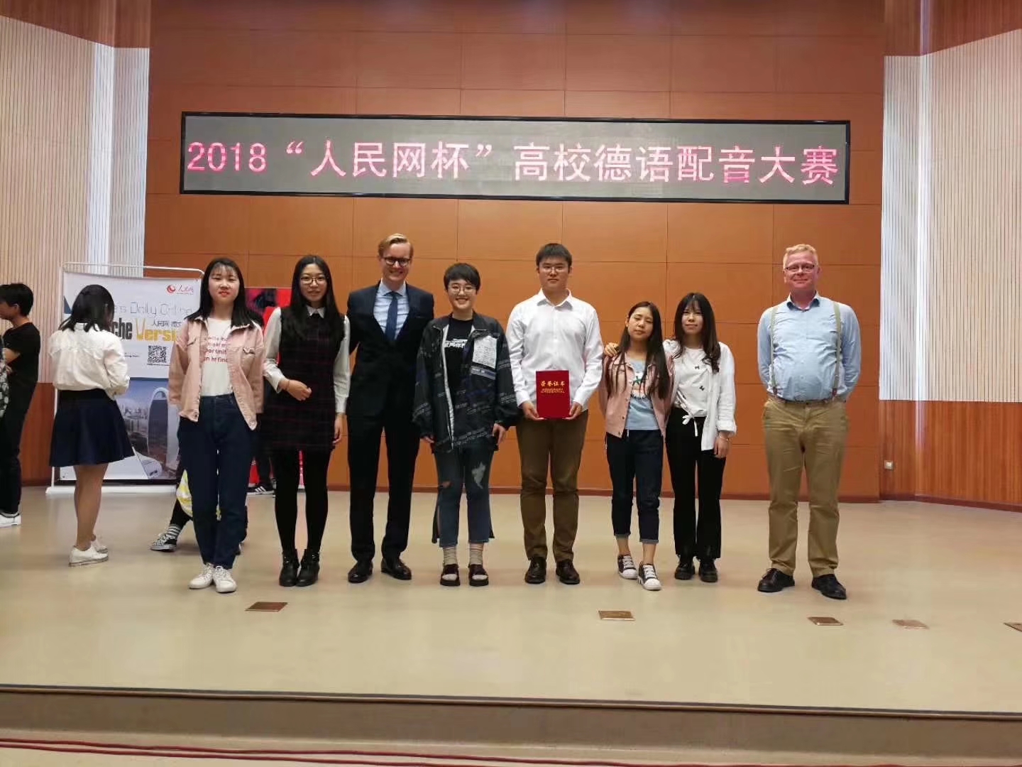 德语专业师生在“人民网杯”高校德语配音大赛颁奖现场